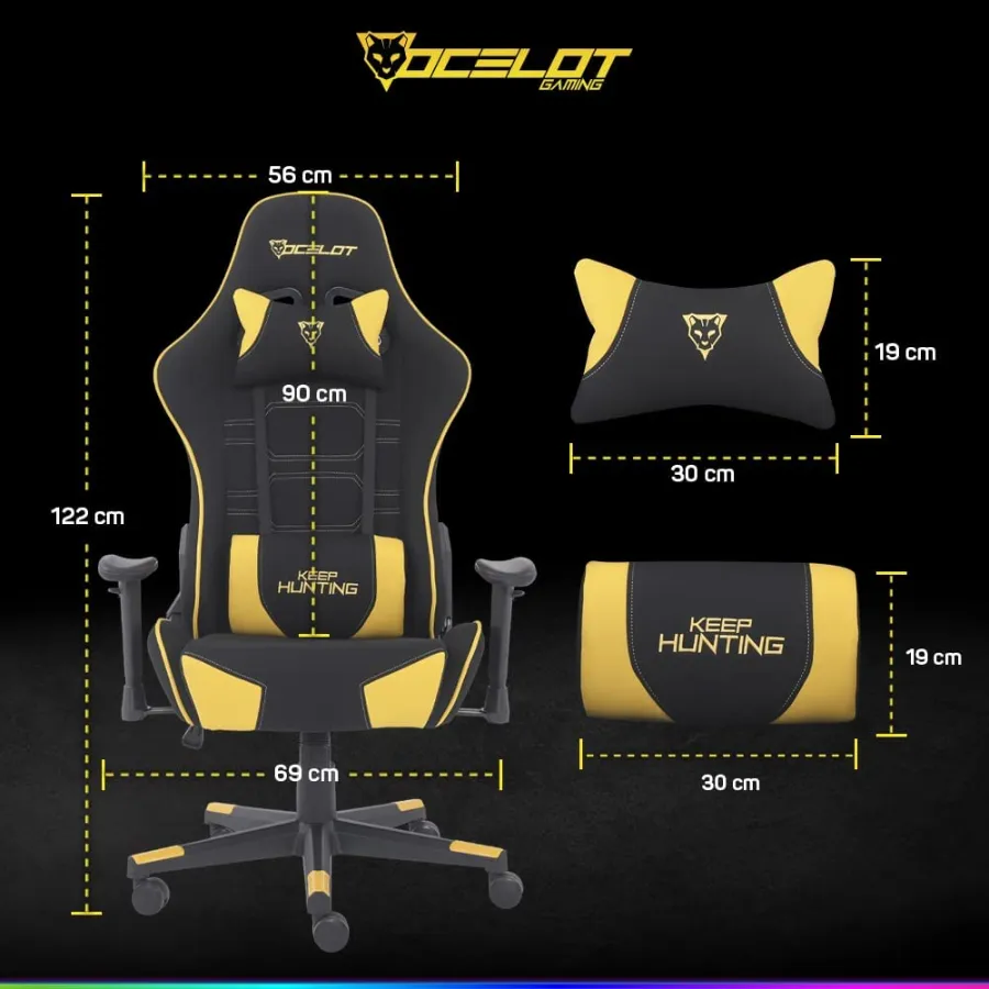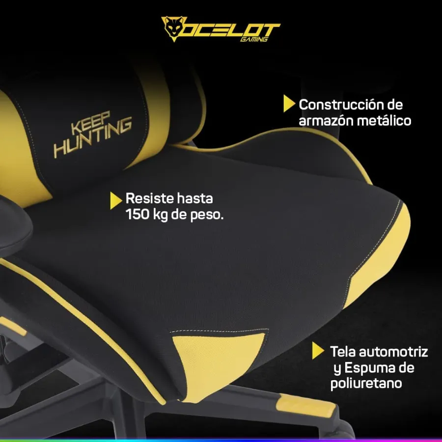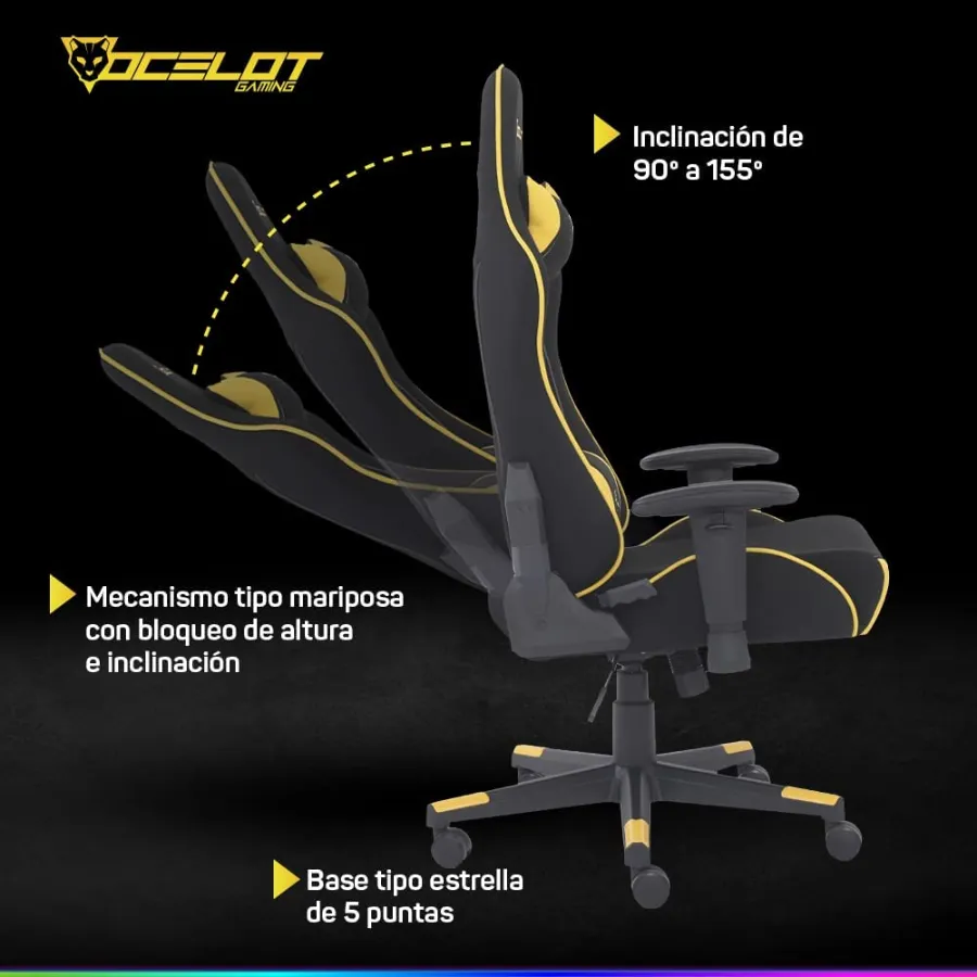 Silla Gamer OCELOT OST-WILD YELLOW / Descansa Brazos Ajustables / 155° De Inclinación / Hasta 150Kg / Negro Con Amarillo / OST-WILD YELLOW