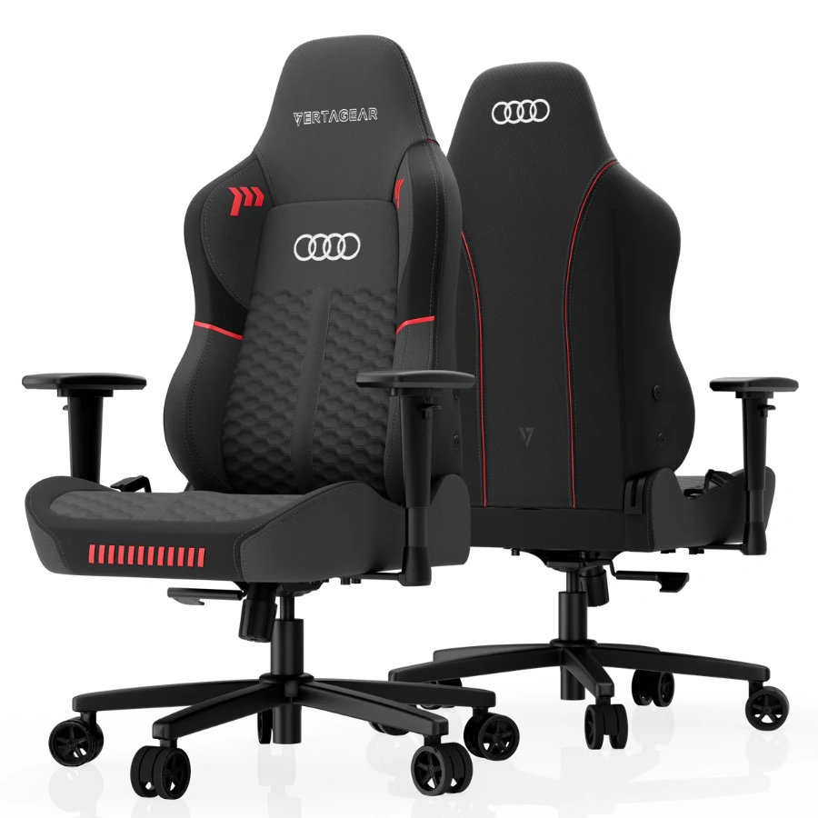 Silla Gamer VERTAGEAR Audi SL3800 – Marco de acero, Cuero PUC, Elevador De Gas Clase 4, Brazo 3D, Ergonómico, Blanco y Negro, Hasta 100kg