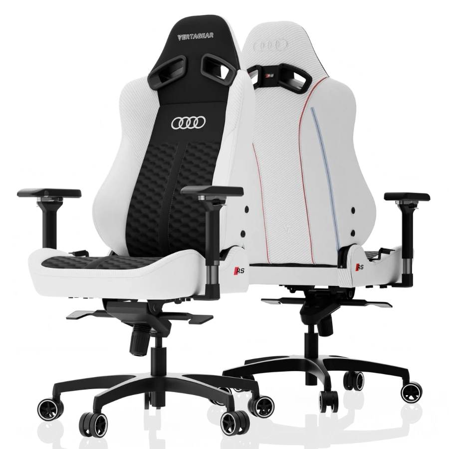 Silla Gamer VERTAGEAR Sl5800 Audi Rs – Marco de acero, Cuero PUC, Elevador De Gas Clase 4, Blanco y Negro, Hasta 113kg, (Led,Rgb Upgradable)