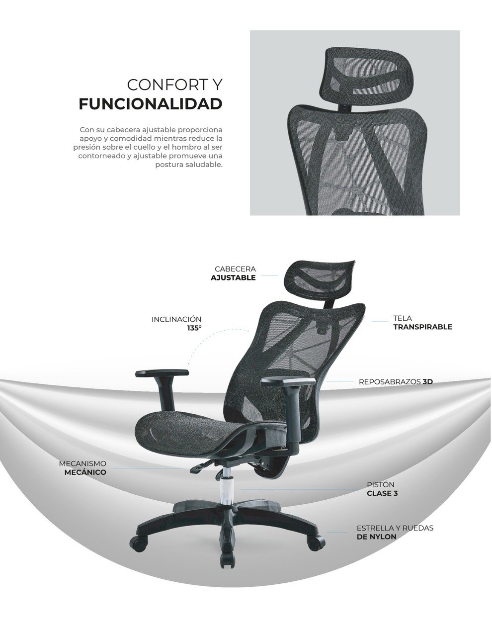 La Silla Ergonómica de Oficina Floe Plus EC727 está diseñada para ofrecerte la máxima comodidad durante tus horas de trabajo. Fabricada con malla transpirable, PP y nylon, garantiza durabilidad y soporte.