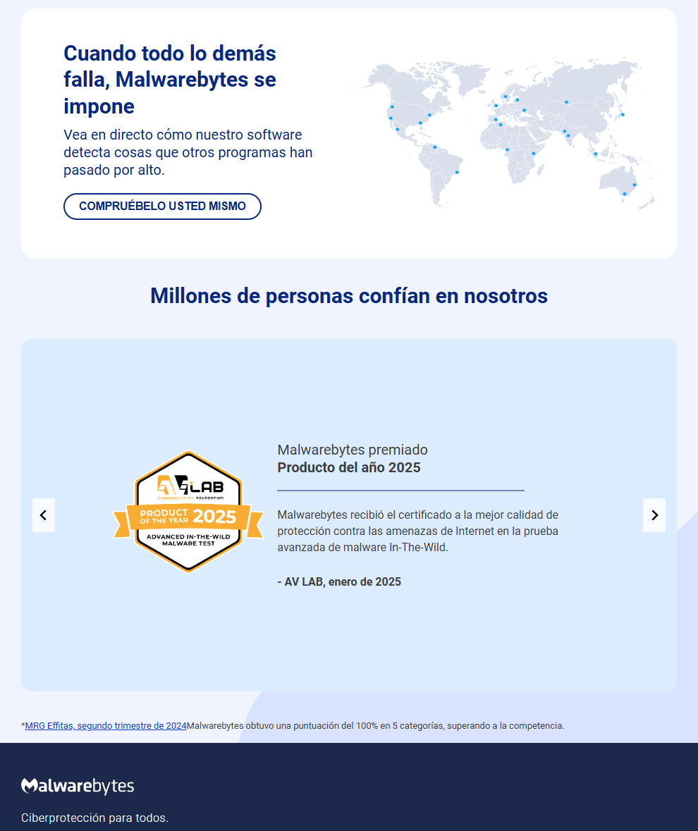 Puedes descargar Malwarebyte desde la página oficial: Descarga Malwarebytes