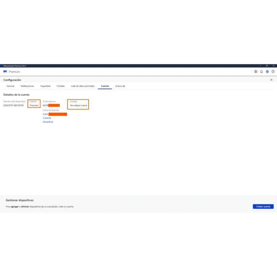 ✅ Esta licencia no se enlaza a tu cuenta de Malwarebytes.com.