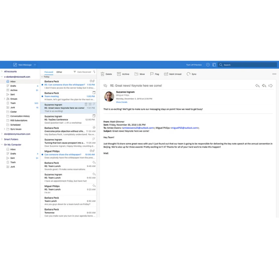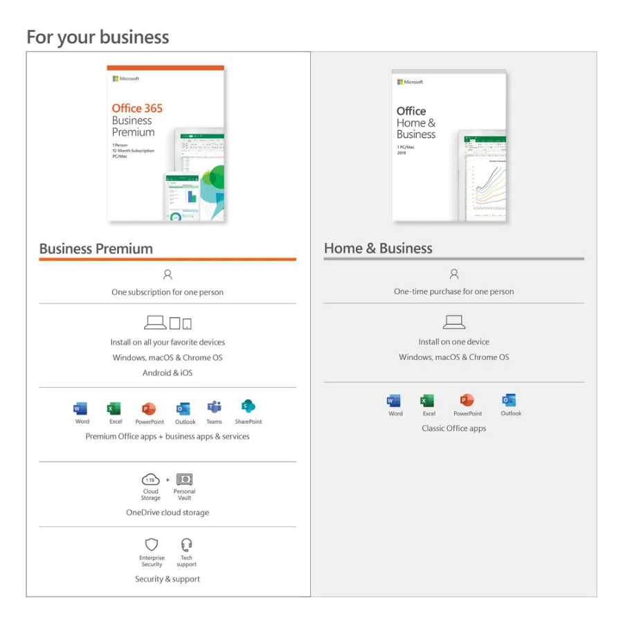 Con Microsoft Office Hogar y Empresas 2019, las familias y pequeñas empresas pueden instalar las apps clásicas de Office y de email en una PC. Las versiones clásicas de las apps de Office incluyen Word, Excel, PowerPoint y Outlook. *