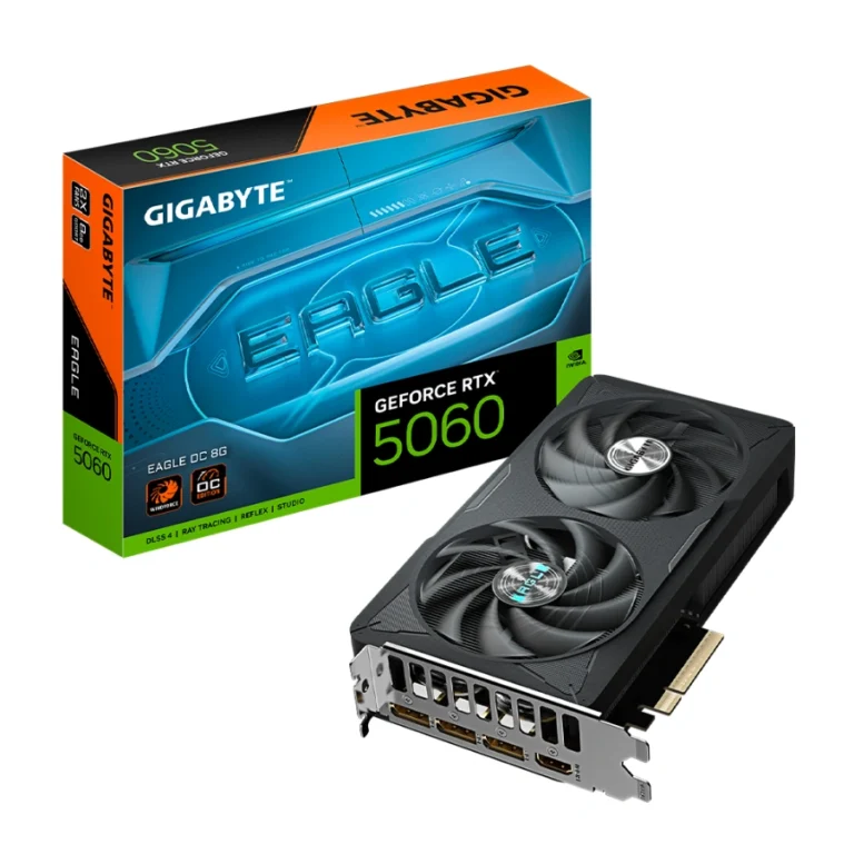 Tarjeta de Video GIGABYTE NVIDIA GeForce RTX 5060 EAGLE OC – 8GB, 128-bit GDDR7, PCI-e 5.0, Núcleos CUDA 3840, DP, HDMI, Boost 2550MHz, x1 8 Pines, Negro