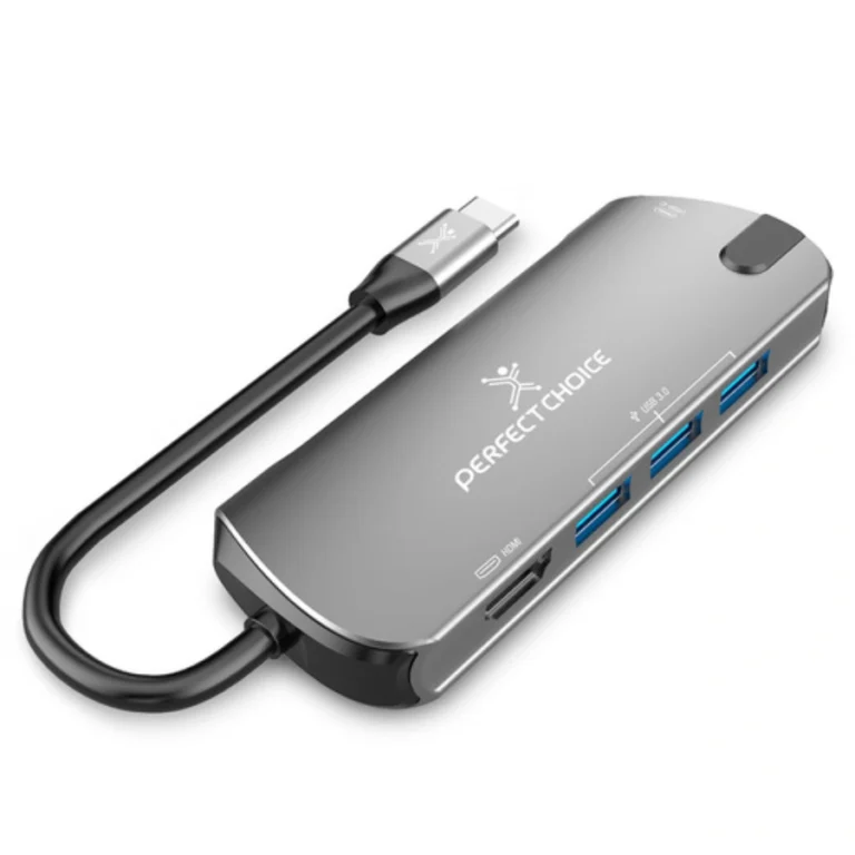 Hub USB PERFECT CHOICE PC-101246 / USB-C A HDMI, X3 USB-A 3.0, X1 USB-C / Portátil / Color Gris