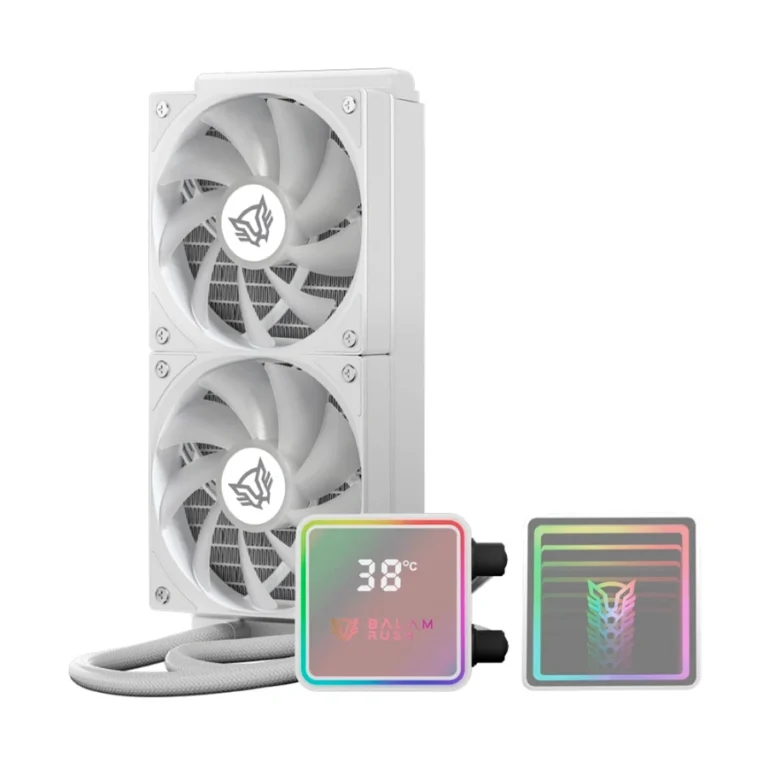 Enfriamiento Liquido AIO BALAM RUSH Cryo Prism 240 Black – 240mm, 2x120mm, Hasta 1800 RPM, 67.5 CFM, 26.9 dBA, 4pin 12V, 3pin 5V – Blanco