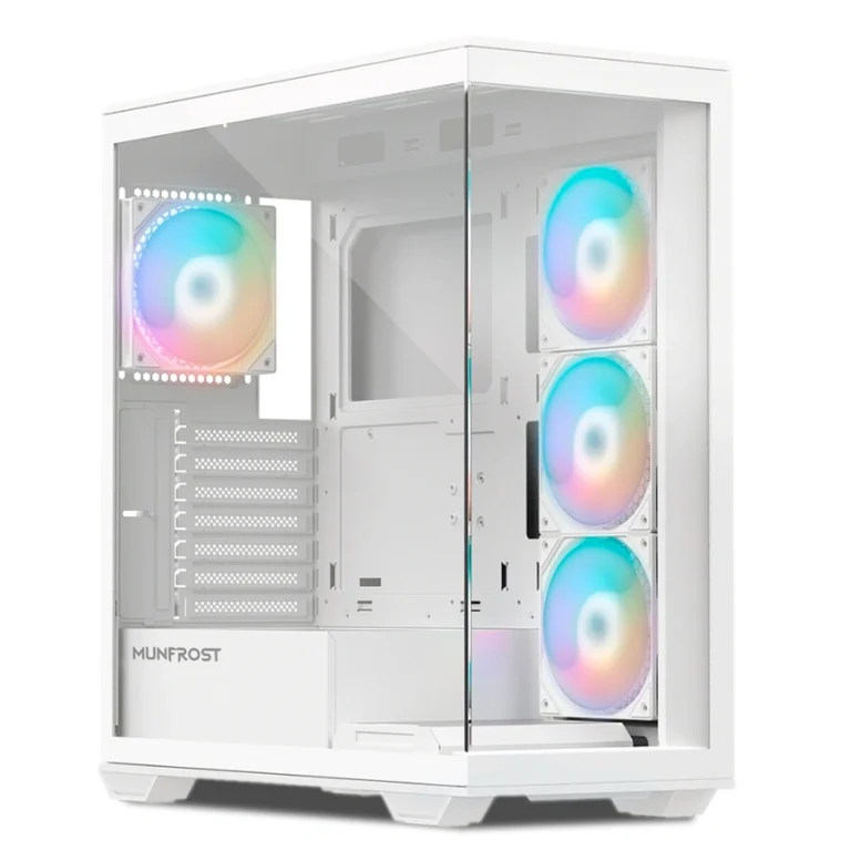 Gabinete MUNFROST POLARIS BLACK – ATX, Cristal Templado, 4 Vent. Incluidos, USB 3.0, Blanco
