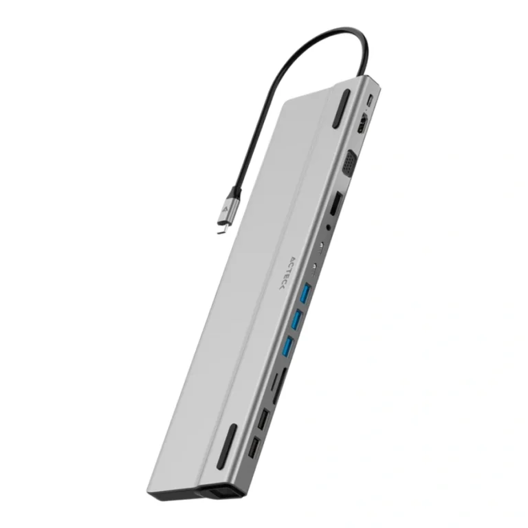 Hub ACTECK PORT X DH690 / 2xUSB A 2.0, 3x 3.1, 2xUSB-C, 1xUSB-C PD, VGA, HDMI, SD y MicroSD, DP, AUX, RJ45 / 10.2Gps / Color Plata